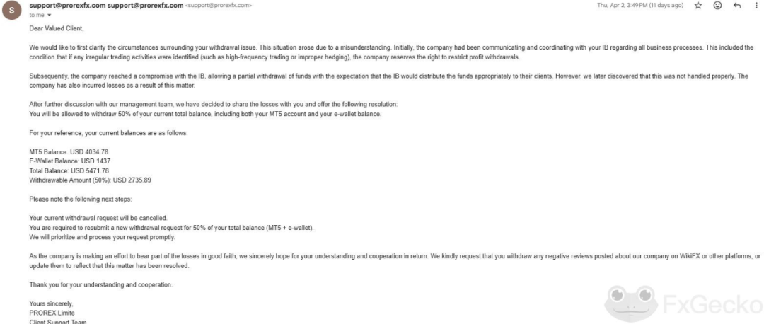 针对上述投诉,斑马投诉已第一时间将相关信息反馈给Prorex平台,截至发稿时,我们尚未收到Prorex平台的正式回应。 我们将保持持续联系,敦促平台提供官方解释和相关证据,促进问题得到公正解决。