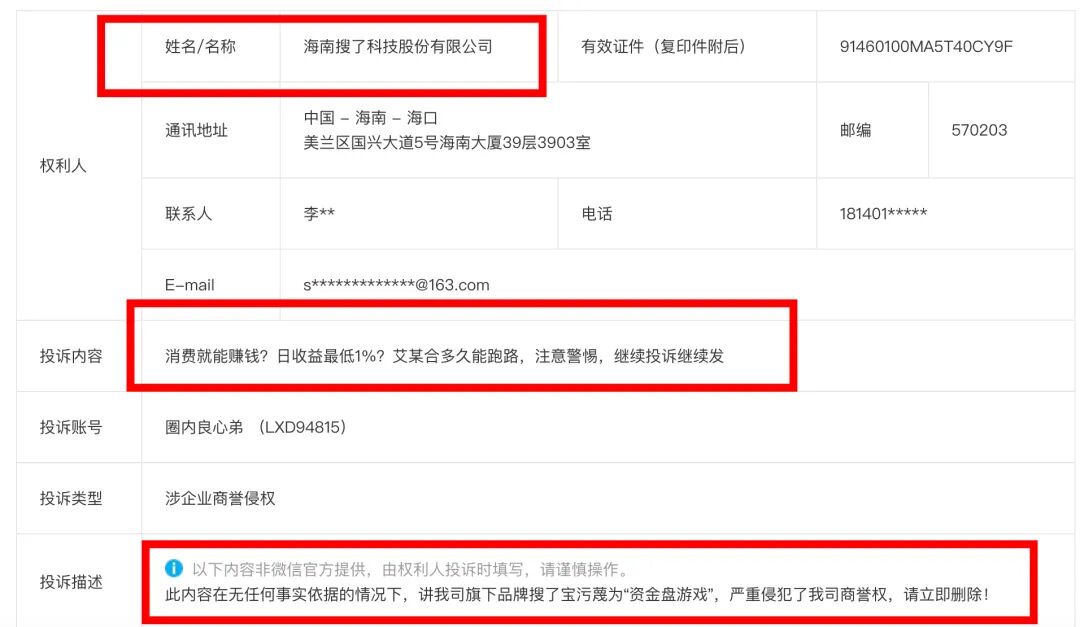 说到这里最近有个叫“艾兴合” 的抢单互助商城项目,关于该项目良心弟也是多次发言,奈何势力单薄,无法和资本镰刀的操盘手做尽斗争,纷纷收买各种水军进行良心弟文章的和谐,不是内心的心虚,为何怕别人说你们呢?还是说舆论影响到你们收割韭菜的行为,最近良心弟有一个新的发现,就是我报道你艾兴合,并不是搜了宝,投诉的主体尽让是这家公司,难道背后是同一个老板的操盘的商城项目,因为相关媒体了解到,该项目比艾兴合还要上线,感兴趣粉丝可以查看。
