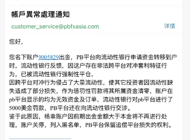 近期,斑马投诉收到用户关于PBFX平台的反馈,经用户同意授权转载发布如下: