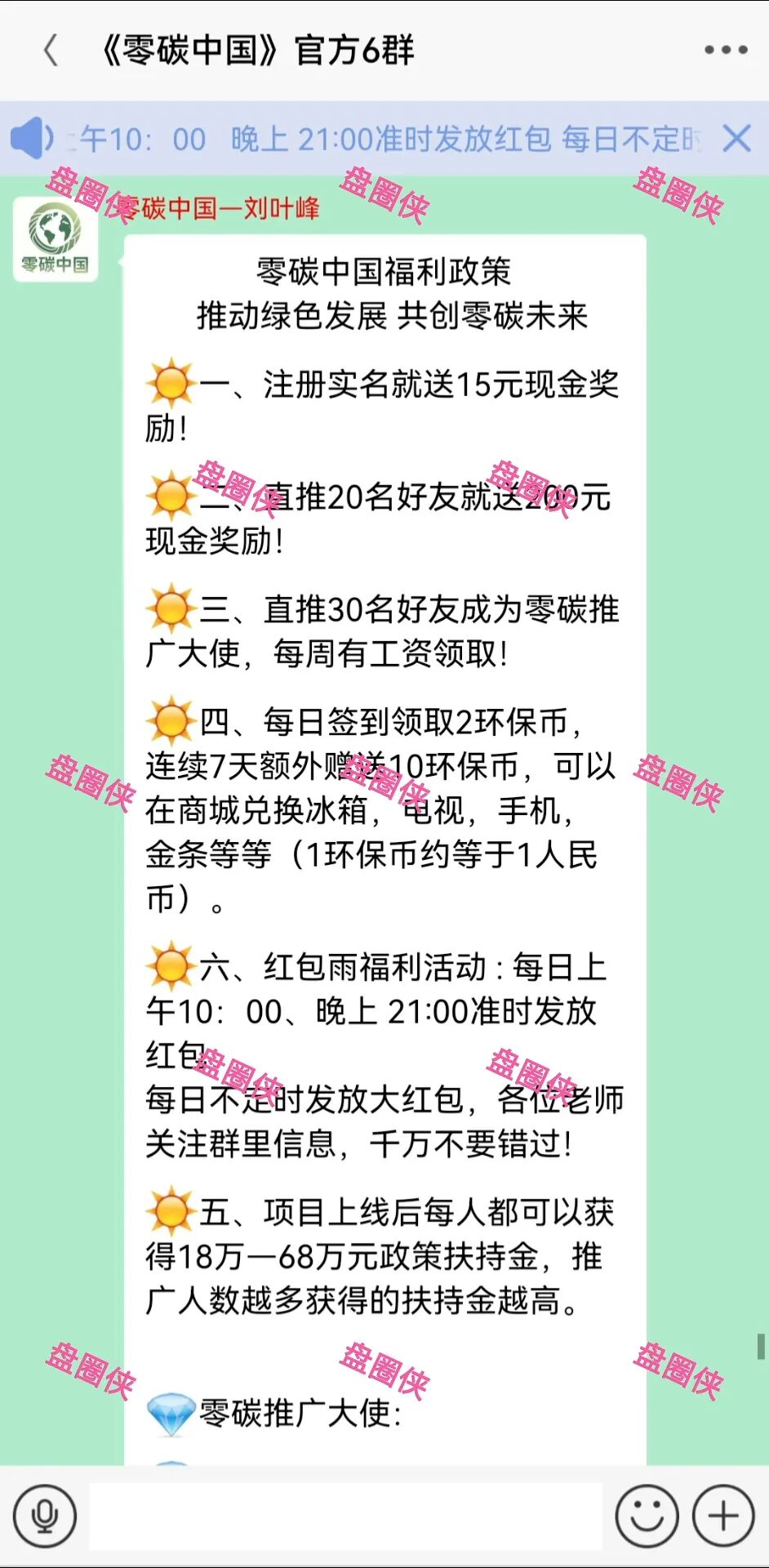 绿色未来:最近上线预热的以绿色低碳为噱头的资金盘项目骗局。注册实名认证送15元,要求上传身份证正反面和录制一个手持身份证正面的视频,每日签到赠送2环保币,连续签到7天额外赠送10环保币,环保币可在商城兑换商品(1环保币等于1人民币)。