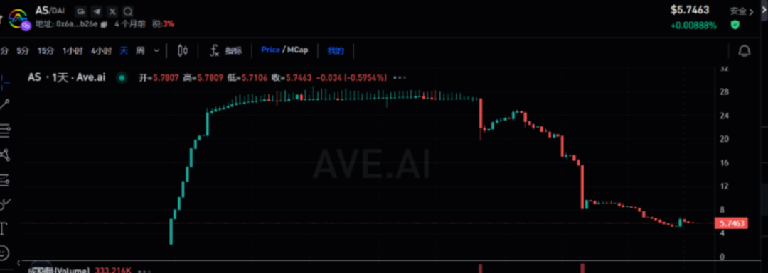 就在不久前,AKAS还打着“全链协议”、“公平发射”、“无私募”的旗号,把市场宣传做得铺天盖地。结果呢?果不其然,AKAS的价格在不到一个月的时间里暴跌了90%!从最高价的29美元一路狂跌到5美元附近,凡是抄底的,全都被套住,内盘玩家无一人回本,全部血本无归。