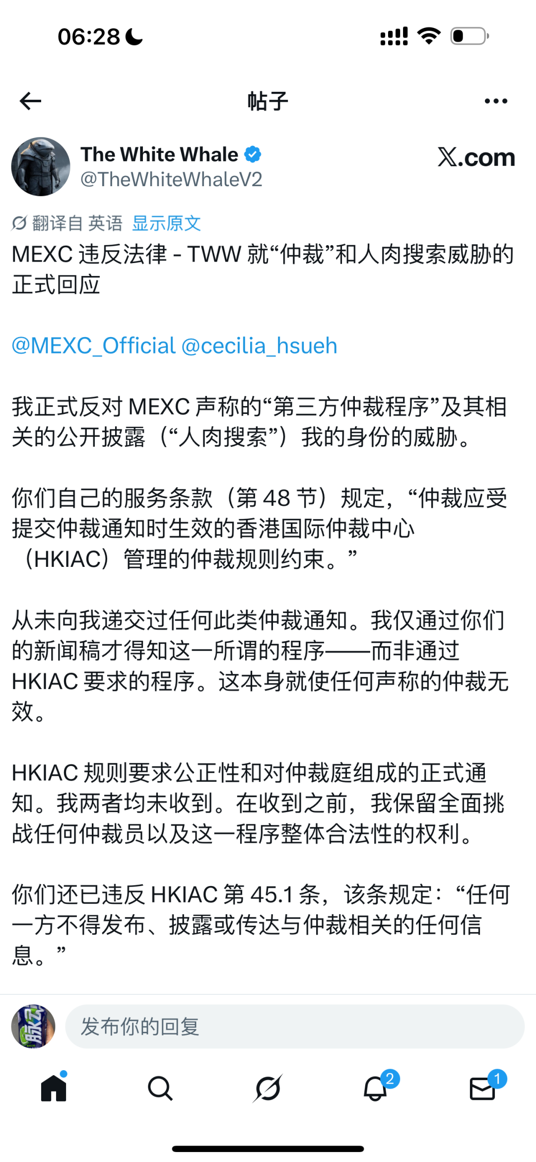 然后抹茶MEXC交易所一开始也打算硬钢,说这个兄弟使用非法交易,说要把这个兄弟的300多万美金拿来回馈社区,这不是把运动员裁判的活儿一起给干了吗?