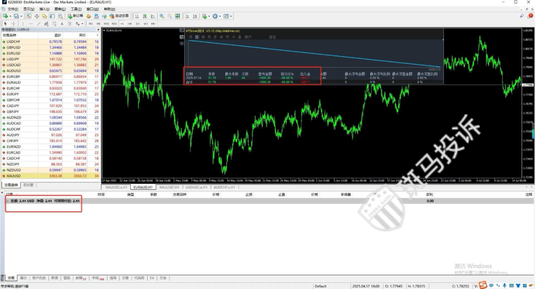 在外汇市场这个看似充满机遇与高收益的舞台上,风险与陷阱往往并存。近日,斑马投诉接到一位投资者的投诉,反映其在ETO Markets平台通过代理商合作交易后出现爆仓损失,引发业界关注。
