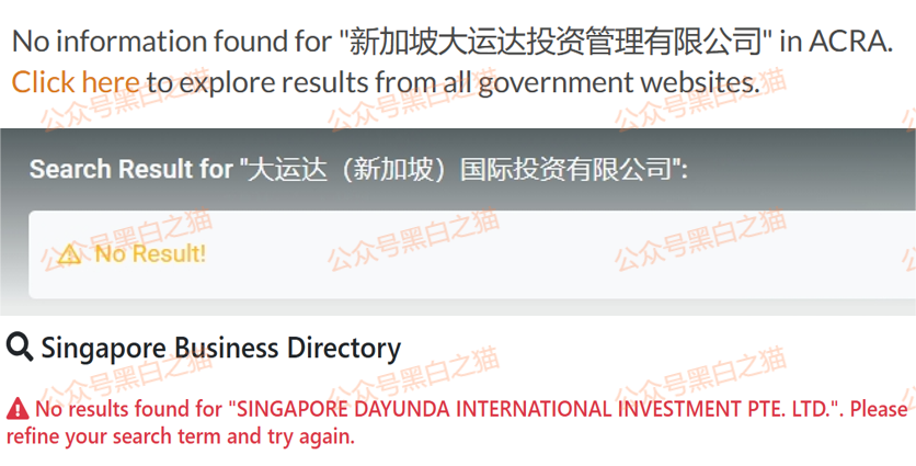 通过新加坡国家商业登记处(ACRA )、会计和公司监管局(bizfile)、税务局(iras)、商标局(ipos)、企业征信机构、甚至格兰德查全球网站都查询了一遍。