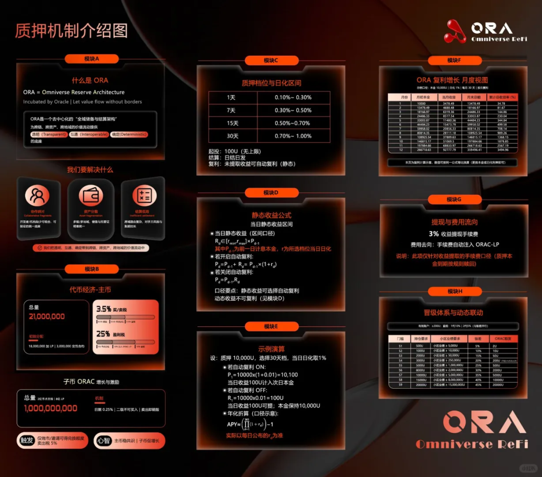 ORA项目正在进行节点招募,限量1000份,每份1000U,宣称可享协议分红、限量空投等5大权益,还有递减空投机制。该项目介绍了代币经济、质押机制、收益计算等内容。但虚拟货币投资本就风险极高,此类项目常存在诈骗隐患,可能让参与者血本无归,大家务必保持警惕,切勿轻易参与。