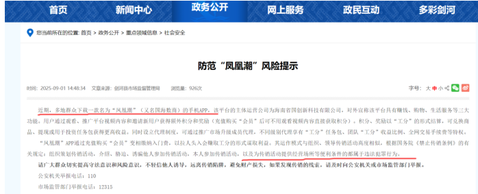 下面是广东省云浮市发展和改革局发布的关于“凤凰潮”的风险提示。