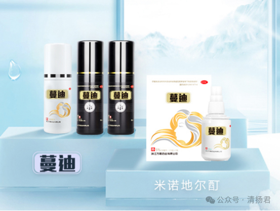 2001年,蔓迪国际推出了中国第一款5%米诺地尔酊剂,取名“蔓迪”。那时候,脱发还是个羞于启齿的话题,生发产品更是寥寥无几。谁能想到,二十多年后,这款产品能连续十年在中国脱发药物市场排名第一,2024年市场份额高达57%。