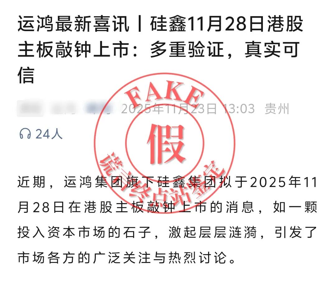 因此,2025年11月28日某鸿某鑫的主板上市的消息是假的!请不要相信!