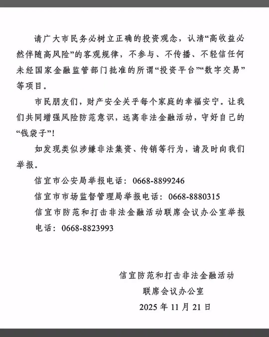 11月21日的时候信宜防范和打击非法金融活动联席会议办公室就发布了相关预警,这也是压死骆驼的最后一根稻草: