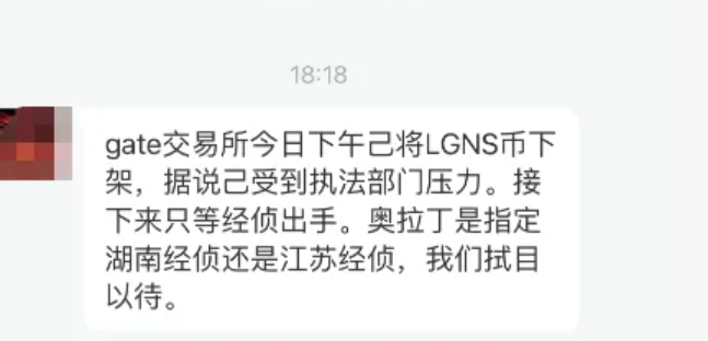 奥拉丁起源的LGNS近日被币安钱包和gate钱包下架了,网传说是被国内警方要求下架的。其实国内早就有地方公安在调查了,这么一个全国各地参与人数上百万人、涉及资金几百亿的虚拟币资金盘骗局,公安不查才怪呢。即使没有政府的介入,这个奥拉丁本身泡沫也是到了一个恐怖的阶段了,看看最近币价都一路跌到7刀了。