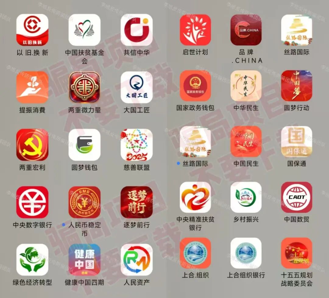 细看以下这些不同骗局项目的软件LOGO,图标最下层背景竟然一模一样!