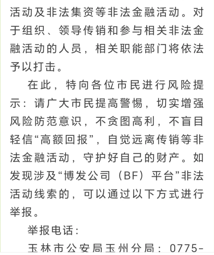 关于“博发公司(BF)平台”涉嫌非法金融活动的风险提示
