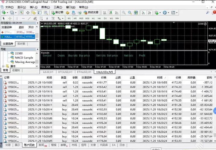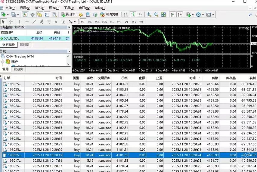 A某表示,成交之后,给出的报价又是4173,实际买进去又是4183,就这样循环,加满仓位,我本来是很轻的仓位,但是突然之间一秒一单,瞬间满仓了。而平台给出的报价点差是33,实际成交是一千多个点。而且同样的EA,A某表示其朋友其它平台同样的ea都没事,就A某的账户爆仓了。