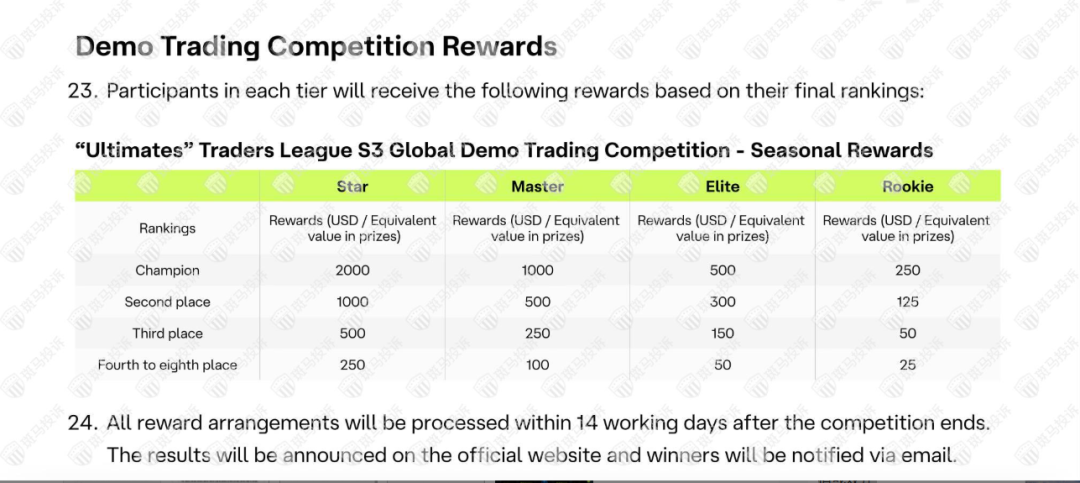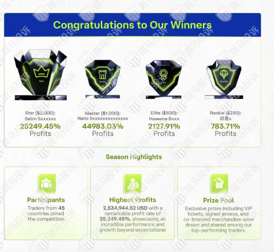 公开宣布我为Traders League S3赛季的#1冠军(星级),奖金是2000美金,至今未到账。