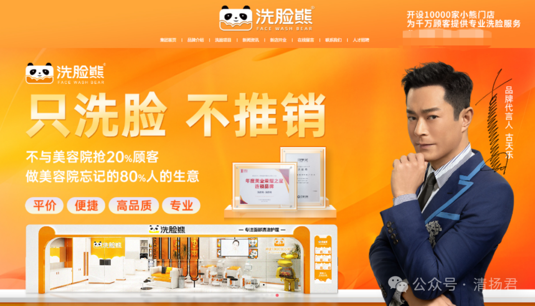 曾几何时,消费者走进一家美容店(尽管洗脸熊不认为自己是美容院),看到墙上挂着古天乐的海报,心里便多了一份安心。毕竟,明星代言意味着品质背书、大牌保障。然而,当“洗脸熊·洗脸吧”——这个由古天乐代言、主打“不卖货,只洗脸”的轻美容连锁品牌,被曝出多地门店突然关门、会员卡作废、退款无门时,人们才猛然惊觉:明星光环,早已不是消费安全的保险栓。