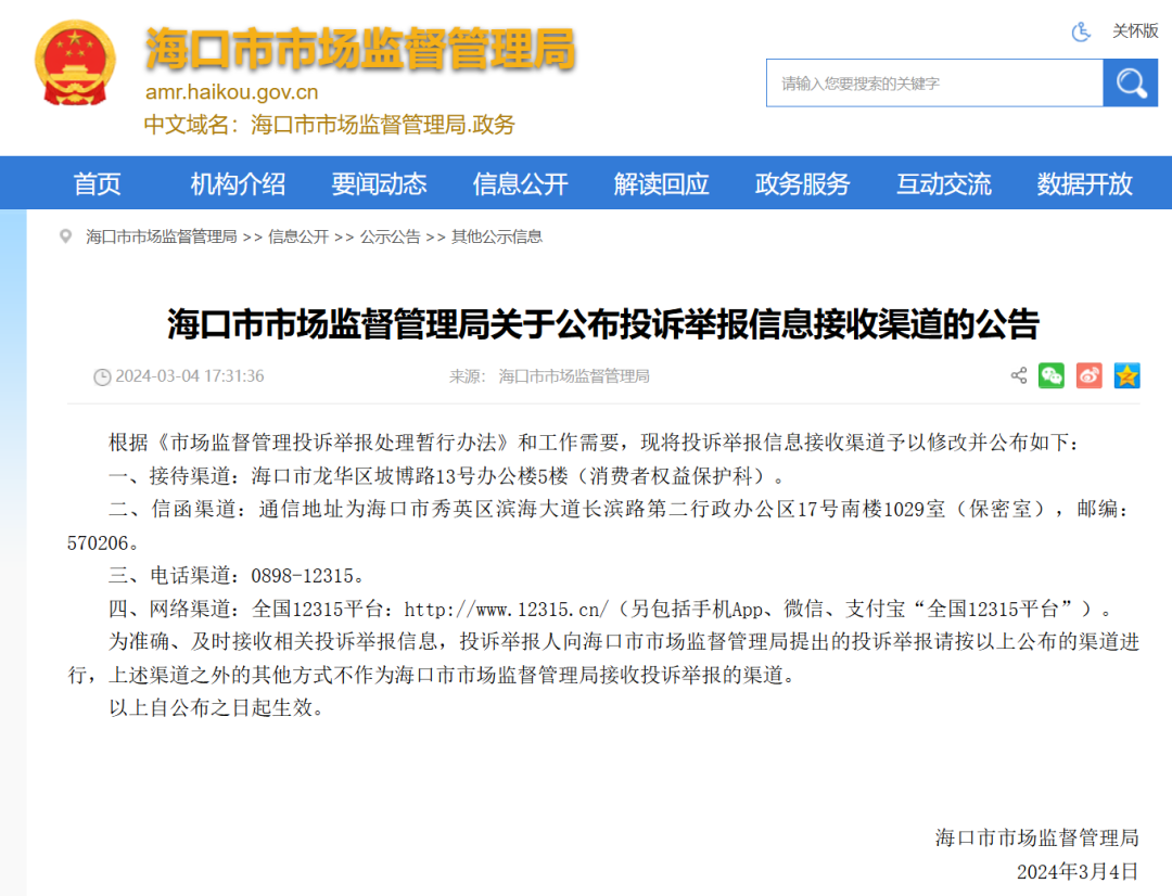 随后小诺通过百度找到了海口市龙华区市场监督管理局的举报电话,0898-12315.(下面是通话录制的视频)