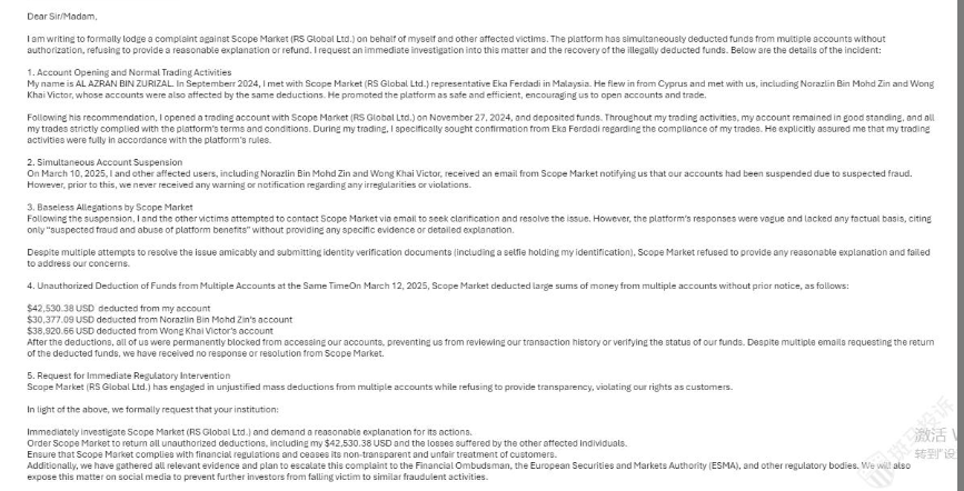 近期,斑马投诉收到了海外用户关于外汇平台斯科普(Scope Markets)的资金账户反馈。