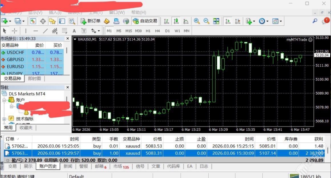A某表示,自己在2026.3.6晚上,非农行情我做了一手多单,15:30:09平仓。因为最近很多平台发生资金纠纷,为了分散风险,我把资金分散在多个平台同时操作。