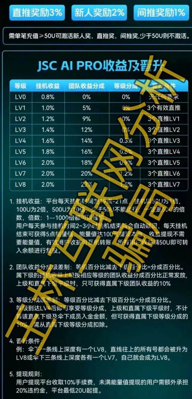 分红类资金盘骗局,正规量化交易,是用算法在市场里做交易,赚的是市场波动的钱,收益是不确定的,有亏有赚,根本不可能给你“保本、日结、固定收益”。这个项目不仅是资金盘,还是传销式资金盘,参与其中不仅会血本无归,还可能触犯法律,承担刑事责任,远离…