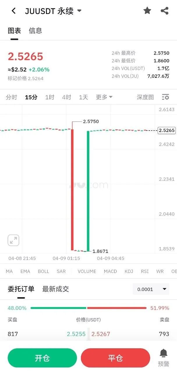 这家万年镰刀交易所又换了层皮卷土重来,JU币从0.4U一路拉到2.5U,靠着100倍合约杠杆,勾得无数韭菜冲进去梭哈,人人都觉得自己能赚得盆满钵满。