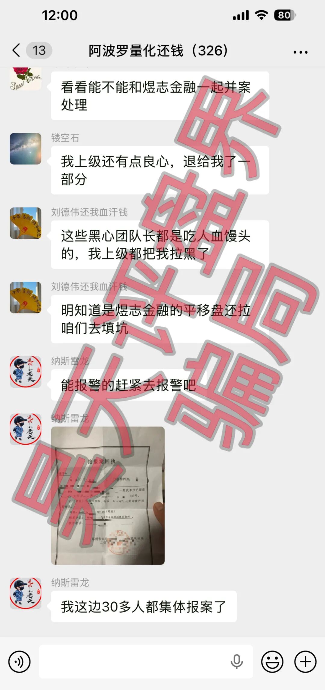 昊天评盘界:阿波罗量化资金盘骗局昊天之前预警过2次,此盘是当时“煜志金融”的平移重启盘,模式就不重复曝光了,合约带单类资金盘骗局,操盘手刘德伟是一直在单割会员,上个月割了2次,这个月前天又单割了500多人,据受害者反馈不少人已经选择报警,此盘已经被调查中,高度预警,即将崩盘跑路,直接上单割的证据: