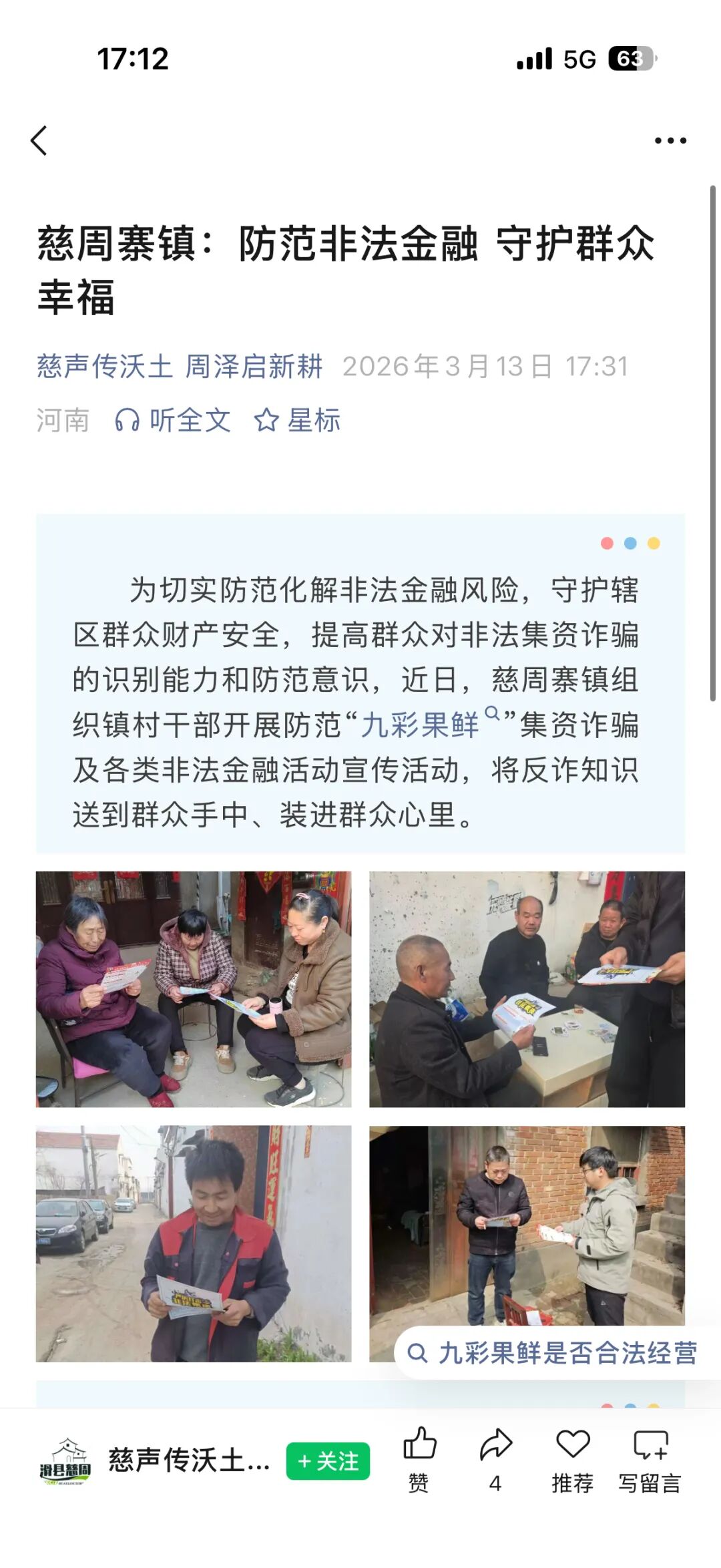 指出真相的人,会变成傻子和骗子的共同敌人,大家好,我是古月,九彩果鲜水果拼车今日发布公告:暂停新增资金进入,你安全撤离了吗?带大家来看看最新公告:【重要通知】关于暂停供应链业务新增资金进入的通知鉴于目前公司供应链业务量已达到阶段性饱和状态,为合理控制业务节奏,保障现有业务项目运营质量,现就暂停资金进入的相关事宜通知如下:自2026年4月13日(周一)起,公司将暂停所有新增资金的进入。2026年4月13日