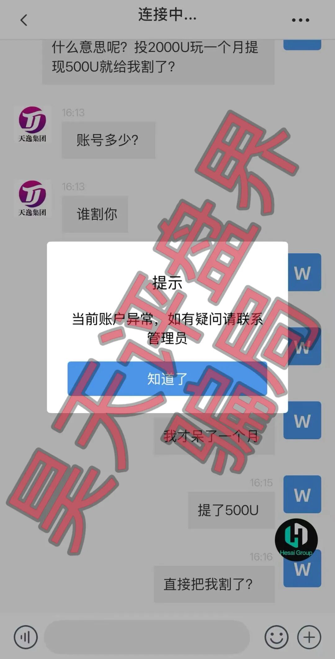 6.套牌的“天逸集团”(Hesai Group交易所)骗局
