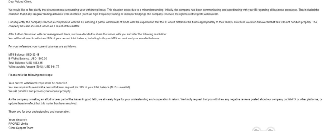 针对上述投诉,斑马投诉已第一时间将相关信息反馈给Prorex平台,截至发稿时,我们尚未收到Prorex平台的正式回应。 我们将保持持续联系,敦促平台提供官方解释和相关证据,促进问题得到公正解决。
