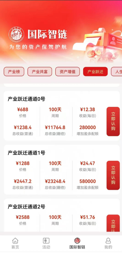 最近,不少人的微信群和朋友圈被一个名为“国际智链”的项目刷屏了。群里气氛热烈,有人天天晒出认购“488元”、“1188元”的截图,高喊着“相信国家,相信智链”,仿佛抓住了财富自由的最后一根稻草。他们宣称这是一个由国务院统筹、国家级机构联合出资的“秘密福利”,只要投资100天就能资产翻倍,每天还能躺着拿收益。