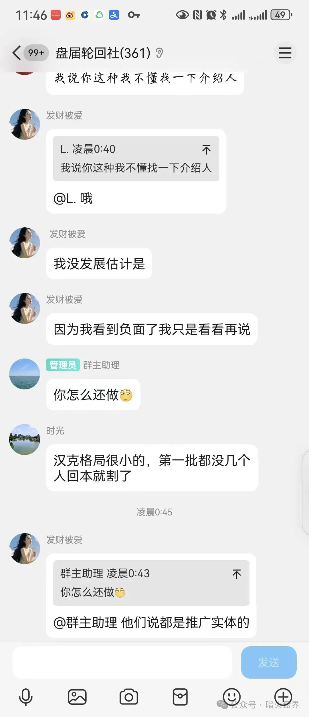 如果一个人说被割可能是个别情况,如果一群人在说,说明这个项目肯定是有问题。