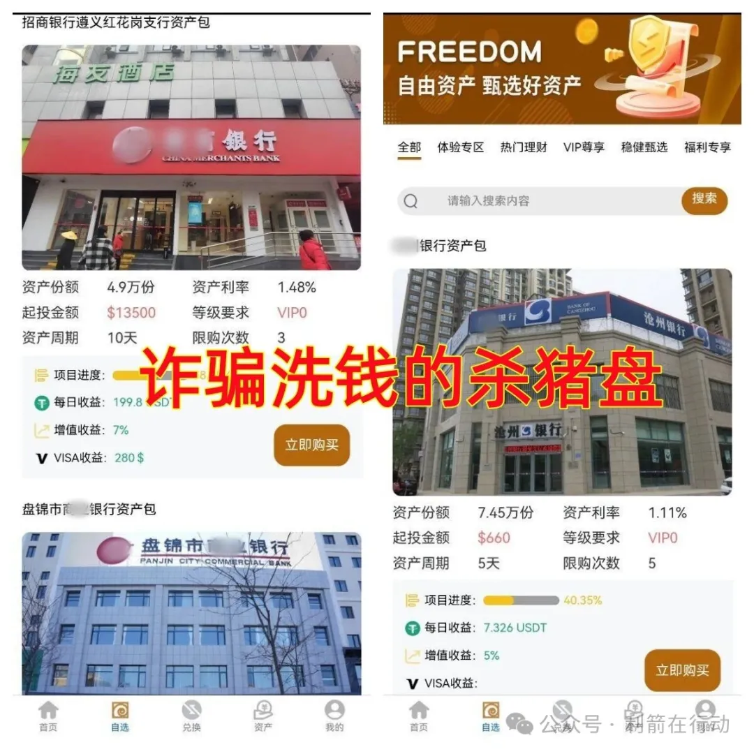 进入FreedomAPP中要求提交身份信息还要上传身份证正反两面?看到了各种交钱金额不等的杀猪盘?而这些杀猪盘全是碰瓷我国大陆的一些银行,所谓的资产包,全是资金盘!既然是香港的公司搞的项目,香港常用的是繁体字,而这却是用的简化字,明显不符,因此看出系假冒。