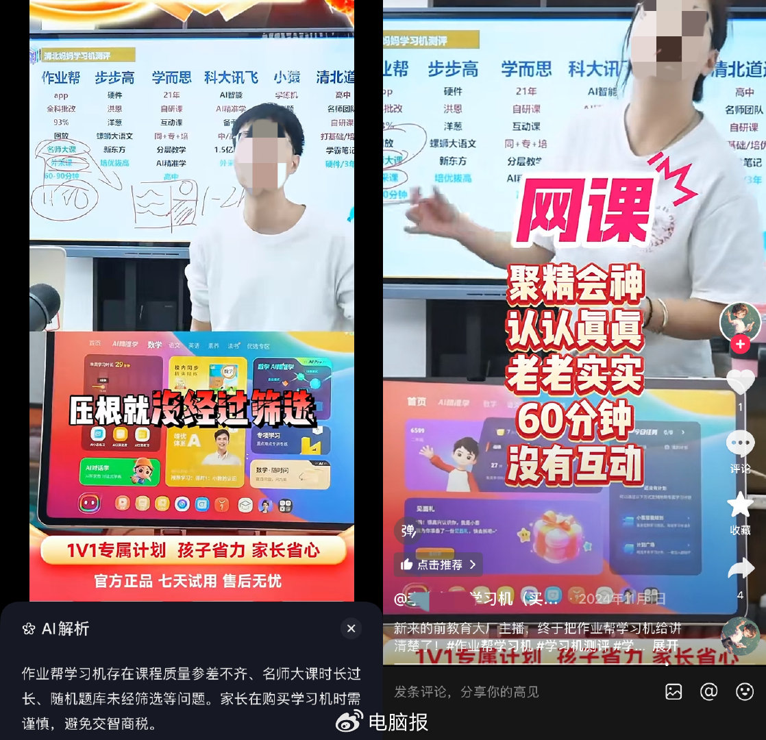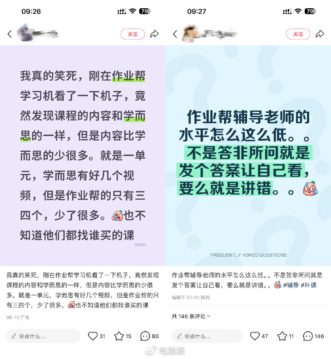 类似的案例还有很多,社交平台不少用户反馈,作业帮学习机的教育资源很多都是照搬其他培训机构的课程内容,辅导老师的水平也不高,普遍都是发给答案让学生自己看,根本没有教学过程。