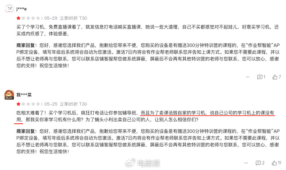 有大量用户在购买作业帮学习机后,都会频繁接到客服的电话,要求购买教培课程......