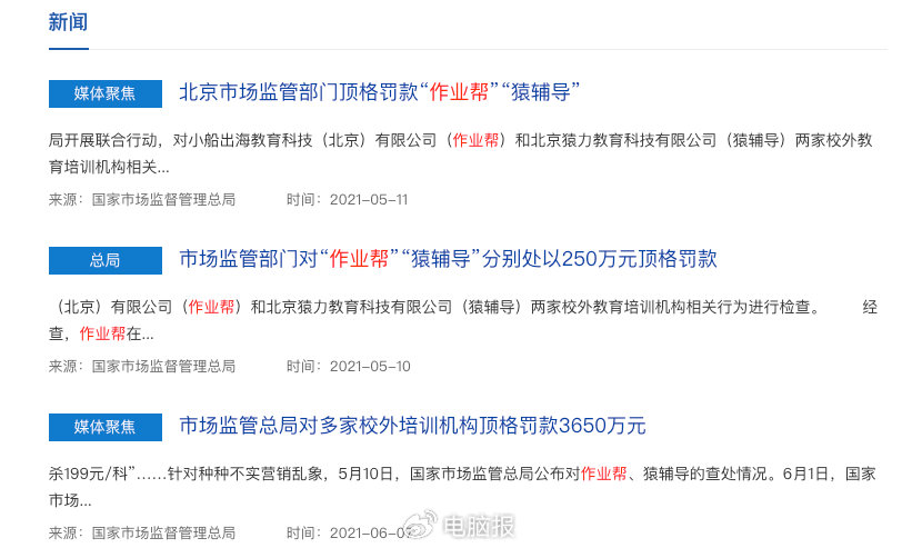 市场监管总局也多次因为作业帮违规进行教培服务进行顶格罚款,所宣传的金牌辅导、一对一答疑以及线上课程,其中不少都是违反有偿教培服务相关规定的,也许正如卖课客服说的一样,作业帮学习机的确没什么用,只是一个获取精准用户信息的渠道,最终还是要参加有偿教培才行。